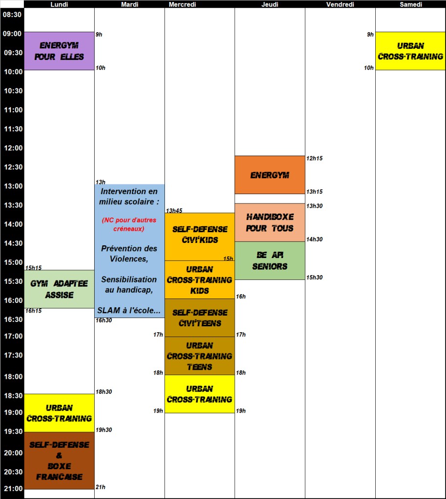 Planning prévisionnel de début de saison : les cours seront maintenus en fonctions du nombre d’inscriptions, sinon nous rembourserons au prorata des cours effectués.