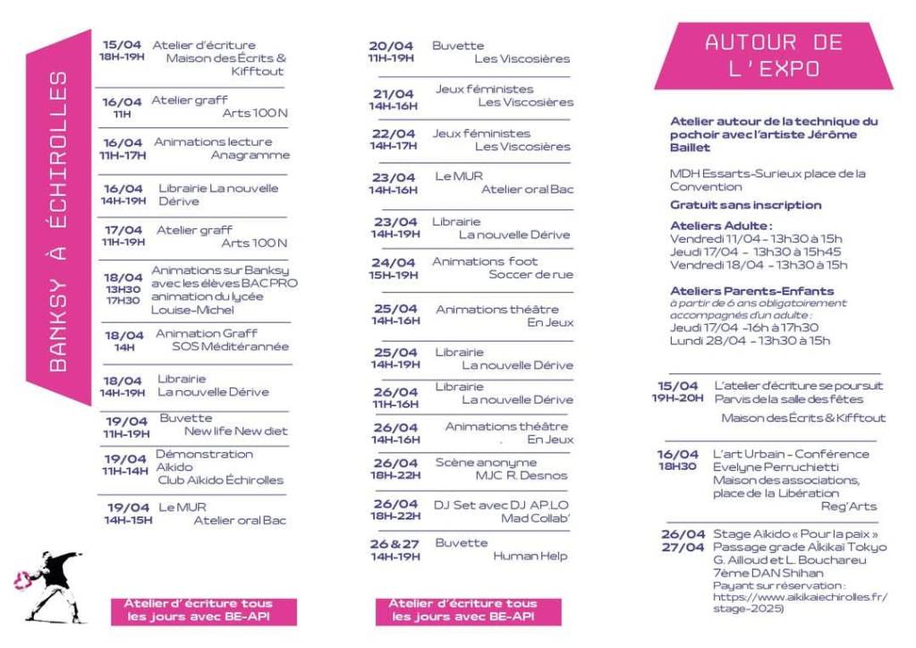 – de participer à un atelier d’écriture organisé par la Maison des Ecrits, animé par Kifftout et SamSonS, sur le lieu de l’exposition, le mardi 15 avril, inscription : lila.guillon@echirolles.fr